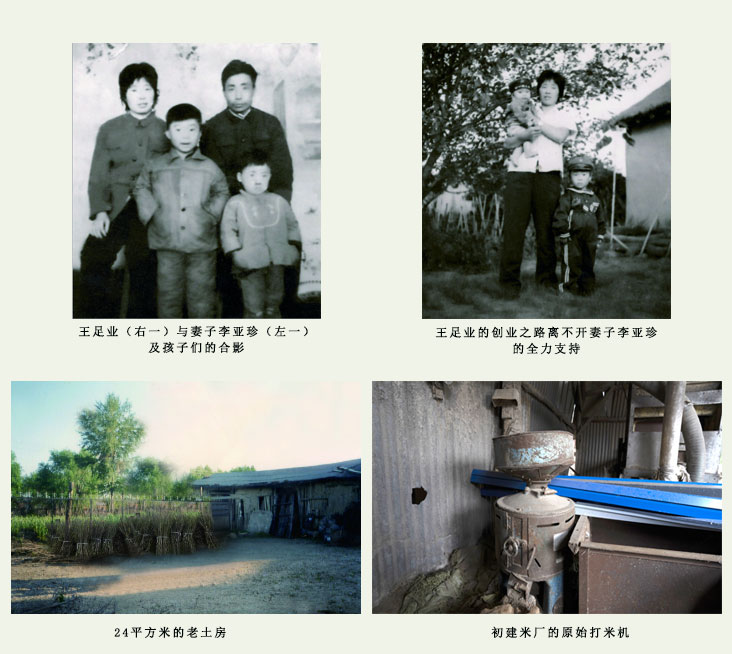 王足业,生于1954年,方正县宝兴乡王家村人。由于家境贫寒,小学一毕业就到生产队干活,还兼生产队电工。村里人一提到他,很深的印象就是踏实肯干。随着农村家庭联产承包责任制的实行和寒地水稻旱育稀植技术的推广,兼职电工的王足业预感到农民种植的水稻余粮会越来越多,正值生产队分队,他抓住商机,接手别人不愿要的一台原始打米机,在24平方米的老土房里,开启了大米加工的创业之路。
